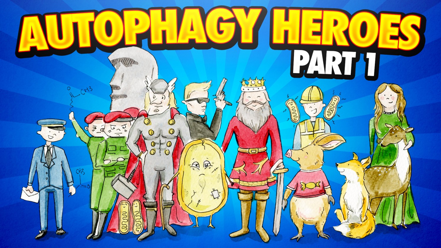 For autophagy, I created the autophagy aardvark. I use the below image to remember his association to autophagy. See him using his long tongue to lick up all the damaged cell components. I also decided he loves toffee, so I’ve named him toffee, the autophagy aardvark.