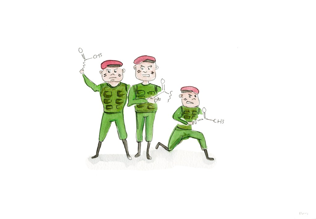 Okay, so now its time to bring in some more character to help us remember this. The first one is actually a group of characters called the CoA Commandos. As you might of guessed, they represent the acetyl-CoA molecules.