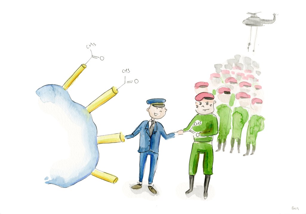 One set of characters in particular who really don’t like to be around when the CoA commandos are around, are the deer sitters, who represent the deacetylase enzymes. They are like dog sitters, but instead of looking after dogs, they look after deers…..