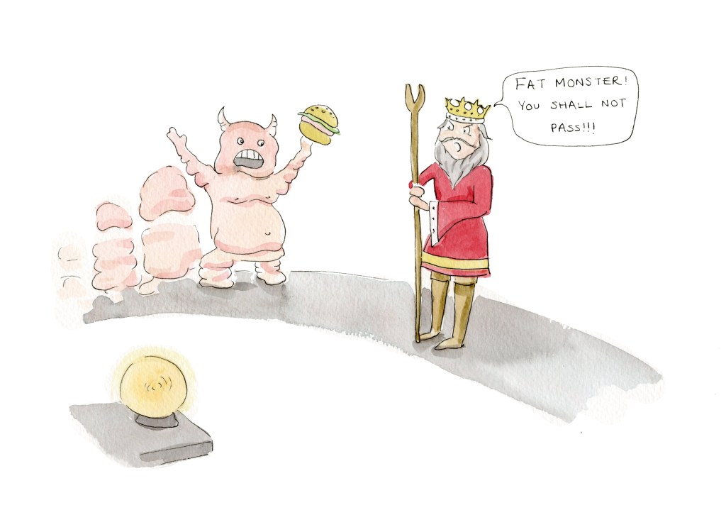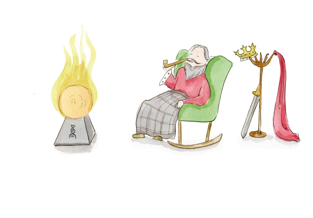 Now, to help remember this pathway, let’s enter another autophagy hero. This one is called the AMP Kinase King, or just the Kinase King for short. The Kinase King is kind of a hippy king, he’s spiritual and he’s all about energy and keeping balance in the Universe.