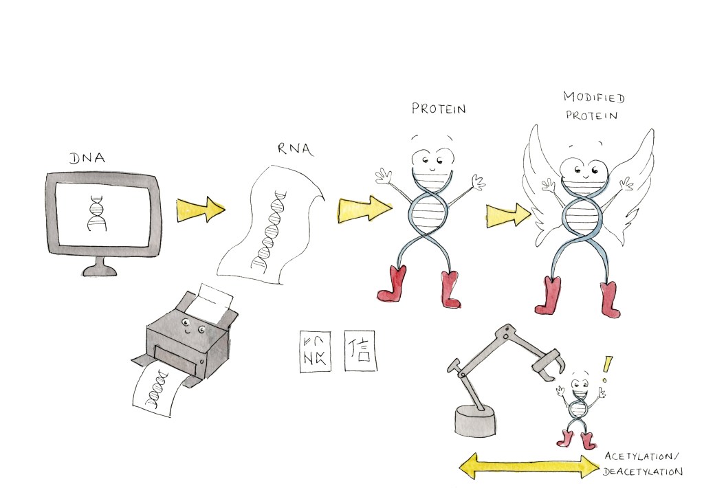 Before we talk about how autophagy is triggered by protein deacetylation, we need to establish what the protein deacetylation pathway is. And the best way to do that, is to first talk about protein acetylation.